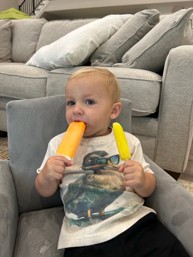 Micah was eating some cheese dip and Kobe dipped his chip all the way into the dip and got cheese on his fingers. He dropped the chip and started saying, “hot, hot, hot!!” He finally realized it was on his fingers and licked it off and Micah was laughing at him. Kobe looked at Micah with the most serious face and said, “Rude!” 😂