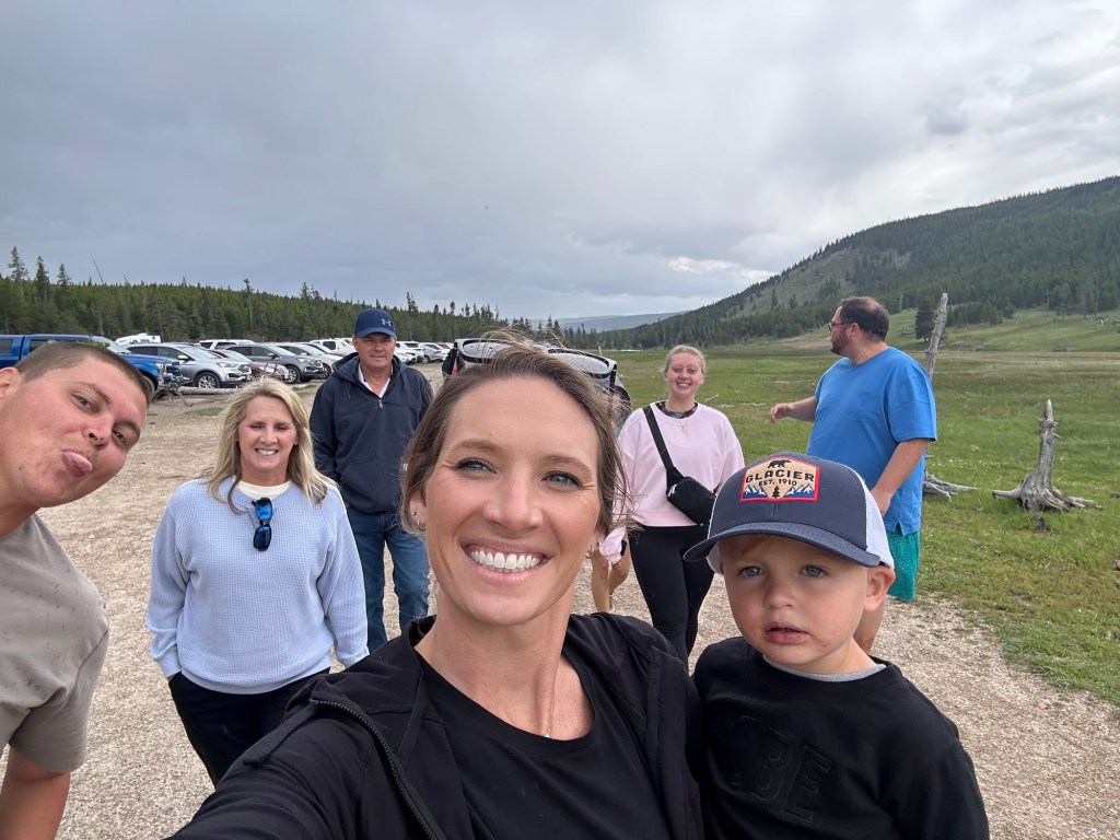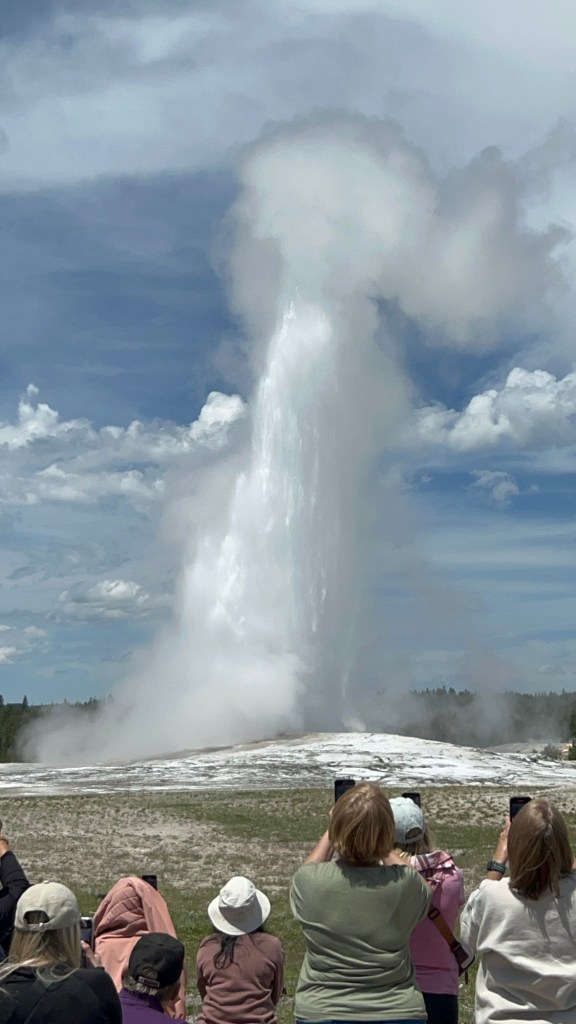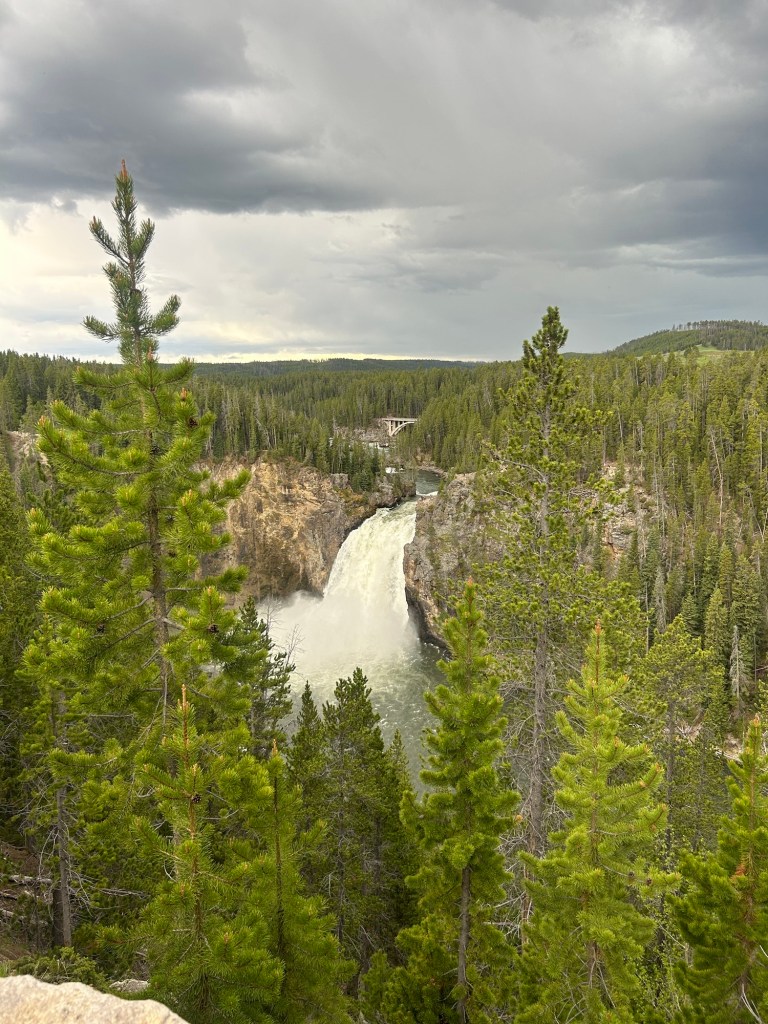 From there we stopped at Old Faithful. We shopped and ate lunch in the lodge and then walked over just in time to see Old Faithful erupt. The next stop was the Grand Canyon of Yellowstone, but along the way we drove through the West Thumb area. We saw so much wildlife!! There was tons of buffalo, elk, and a grizzly bear! When we got to the Grand Canyon of Yellowstone, we could see a thunderstorm coming, so we looked at it real quick and took off back to the car to head home. We stopped for dinner at Hanks Chop Shop and ended the night in the hot tub at our AirBnb.
