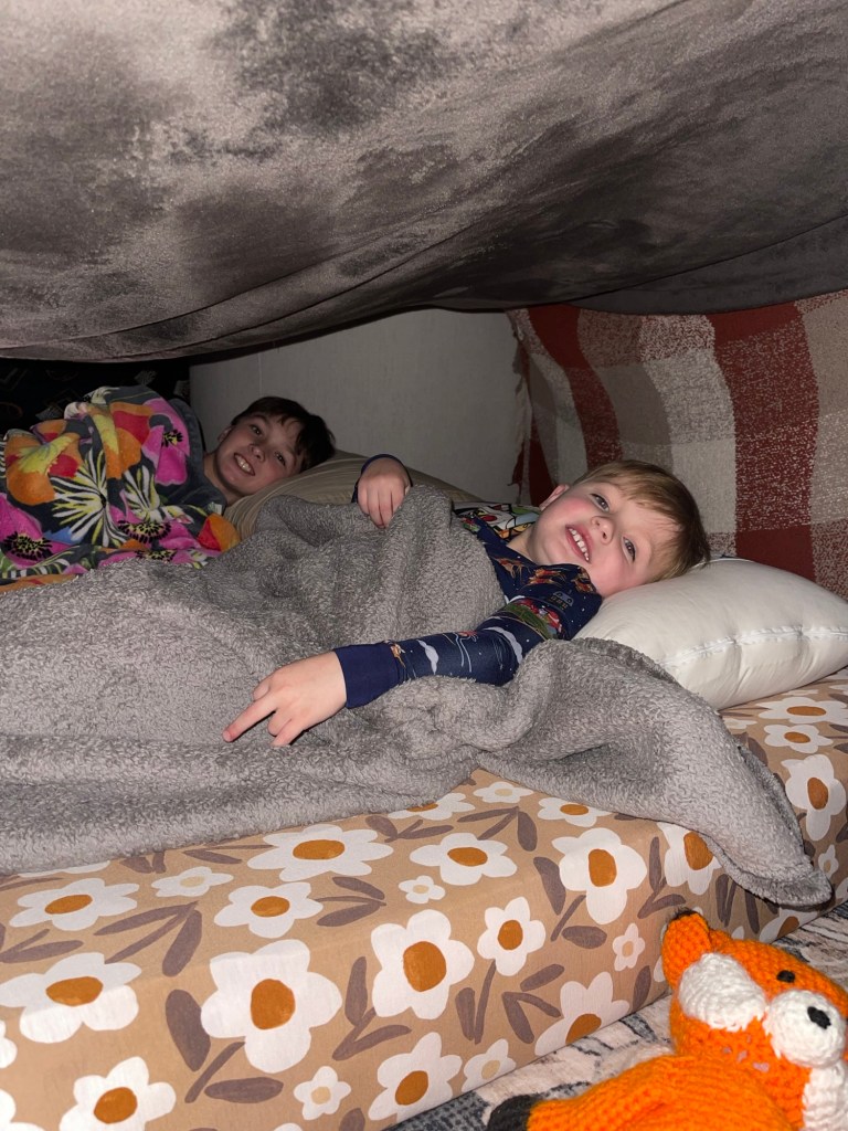 We had our first family movie night as a family of four, Kobe got his Batman costume in the mail, we had our annual Valentine’s Day dinner at my mamas house, we enjoyed several more pretty days playing outside, building forts and playing camp, Kobe got his referee costume in the mail, and we have been soaking in all the snuggles!