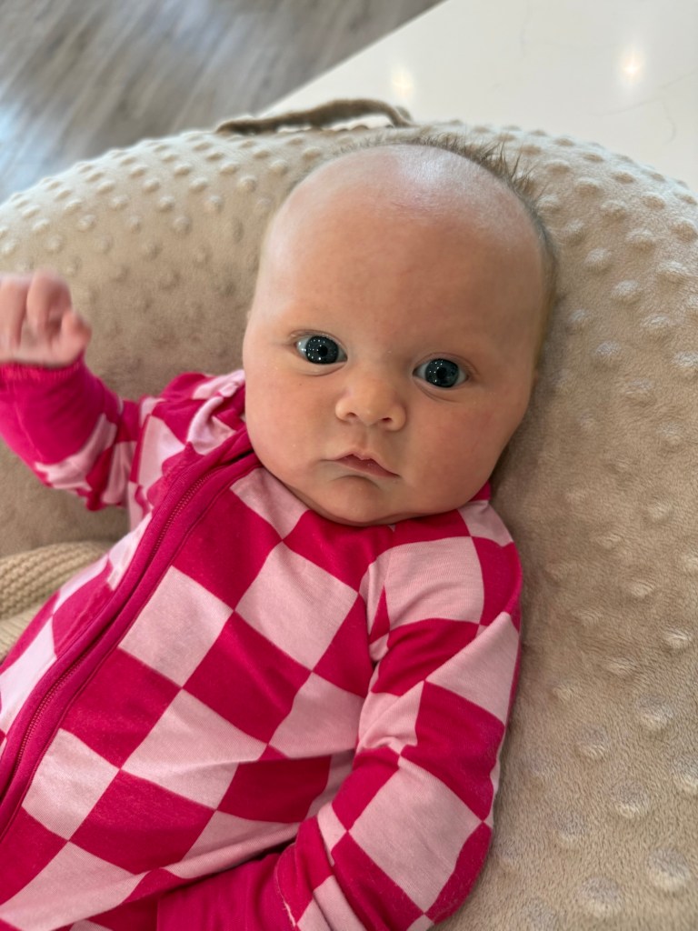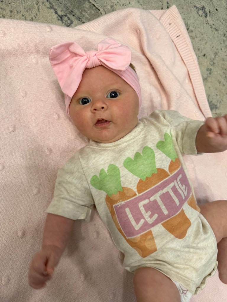 New PJs from the Easter bunny, Lettie turns 2 months old, we had our second book club meeting, and more sweet Lettie smiles.
