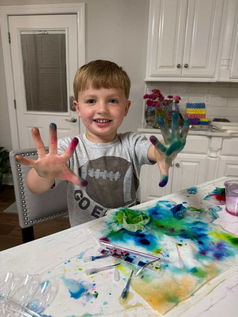 Kobe is absolutely feral and I love it! He wanted to wear his green rain boots to Lettie’s doctor appointment, so why not? He also got his first haircut at a barber shop, then met Austyn at the movie to watch King of Kings and get cookies.